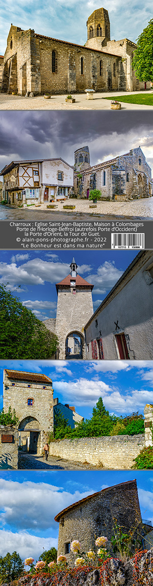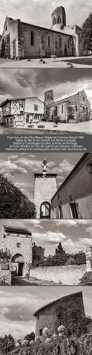 L'histoire : Je découvre Charroux en 2015 et je redécouvre ce village en 2021, à l'occasion de l'un de mes stages de formation cadrage composition à la photographie début juillet 2021. Les sujets sont là, foisonnants, étonnants parfois, et toujours beaux.