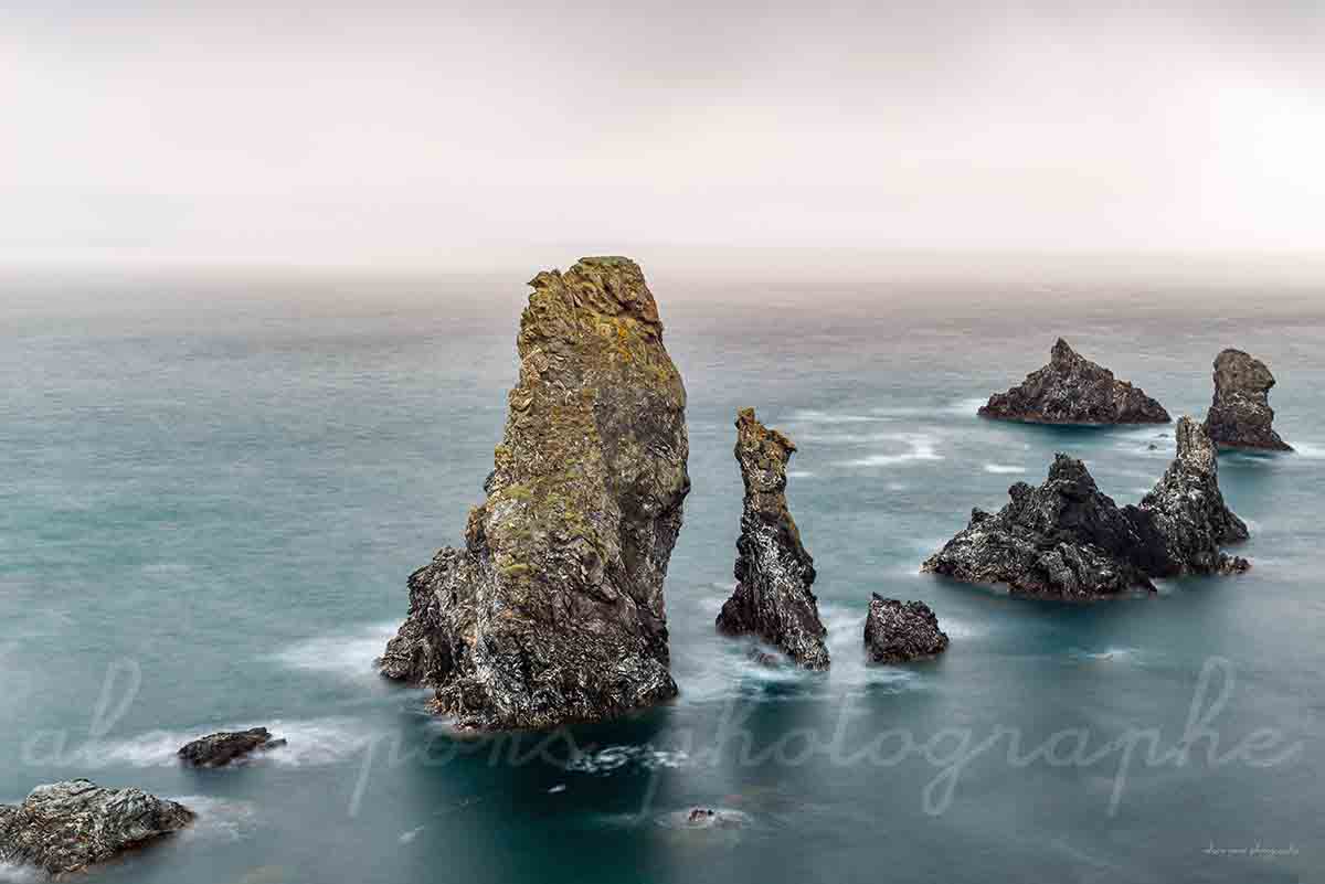 Photographie des célèbres Aiguilles de Port-Coton à Belle-Île-en-Mer, au Lieu-dit Goulphar.