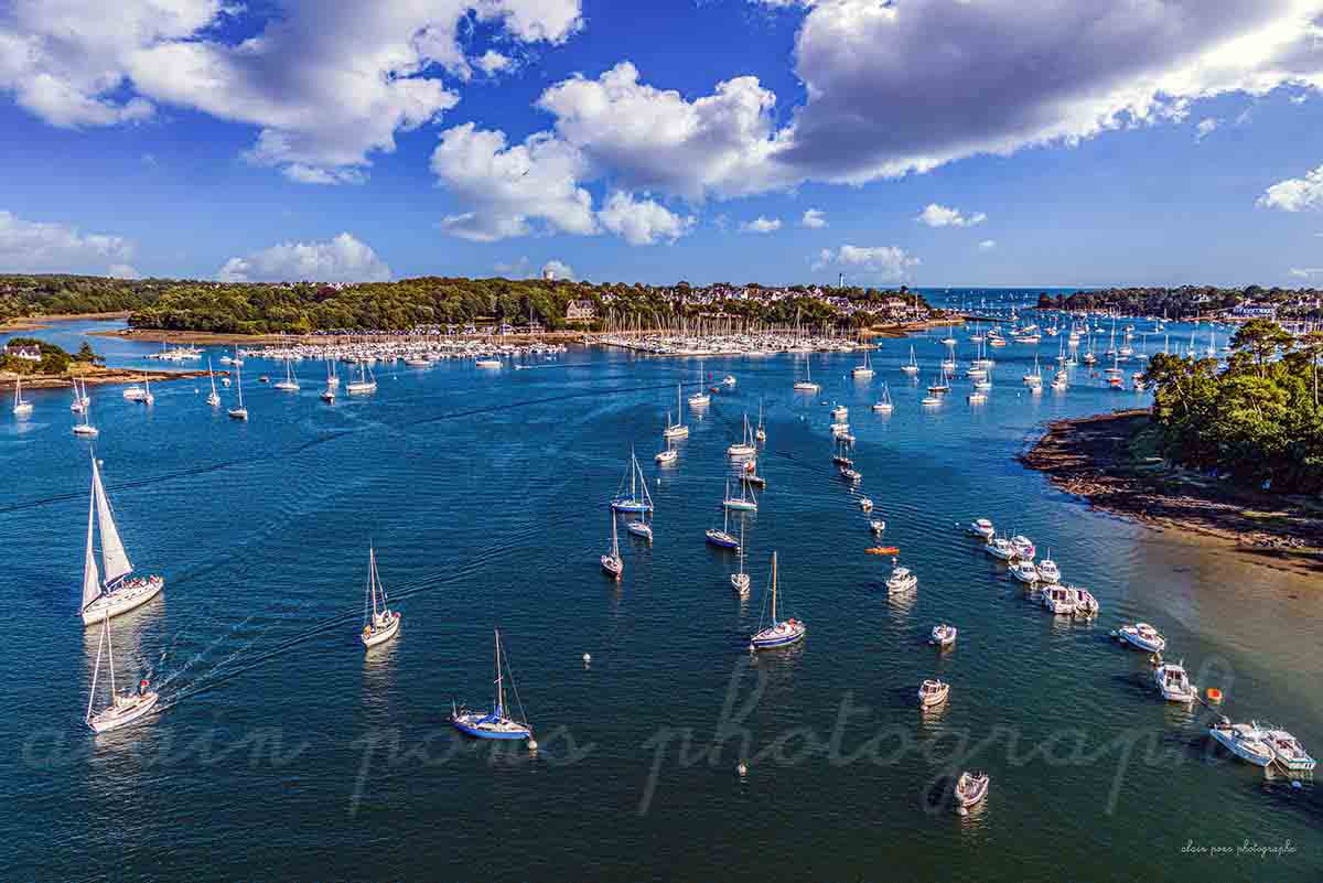 Cette photographie embouchure de l'odet est à la fois facile depuis le pont, encore faut-il avoir une belle lumière, le cadrage et les bateaux bien disposés ! Bénodet, Sainte-Marine, Combrit et les environs constituent une très belle destination vacances et loisirs.
