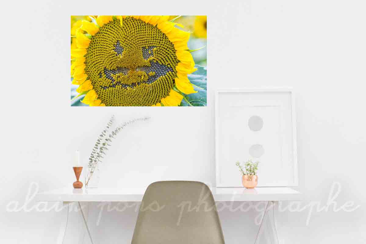 Trouvé tel quel sans aucune intervention humaine, et surtout pas la mienne, le plaisir à l'état brut, une photographie paréidolie originale pour décorer votre intérieur. Une autre photographie ici avec d'autres Tournesols.